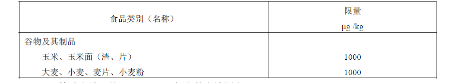 表1食品中脫氧雪腐鐮刀菌烯醇限量指標