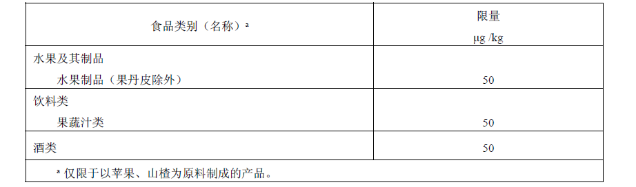 GB2761—2011食品安全國家標(biāo)準(zhǔn)食品中真菌毒素限量規(guī)定了食品中展青霉素限量指標(biāo)。