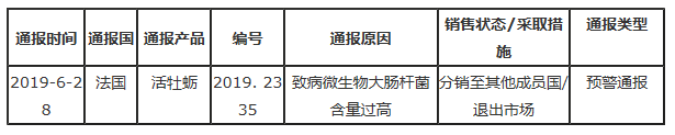 據(jù)歐盟食品飼料類快速預警系統(tǒng)(RASFF)消息,2019年6月28日,法國通過RASFF通報本國的活牡蠣不合格,因為這些產(chǎn)品中大腸桿菌的計數(shù)過高。