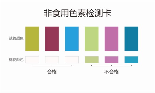 1.2:吸取過(guò)濾后的樣品液10mL于試管或三角瓶中,加入一小塊檢測(cè)試棉,沸水中加熱1分鐘,用鑷子取出檢測(cè)試棉,用清水漂洗試棉,如試棉染上的顏色不褪的為非食用色素。