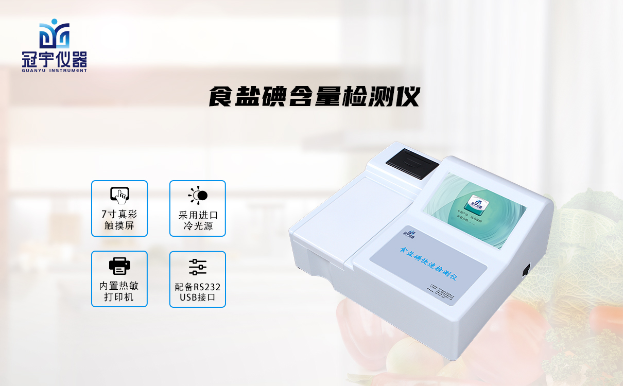 七、用儀器檢:冠宇儀器食鹽碘含量檢測(cè)儀GY-SSYD10能夠快速檢測(cè)食鹽中食鹽碘的總量。準(zhǔn)確快速判定是否符合孕婦碘鹽的含量要求。鑒定孕婦媽媽的碘的攝取。確保碘的攝入安全。