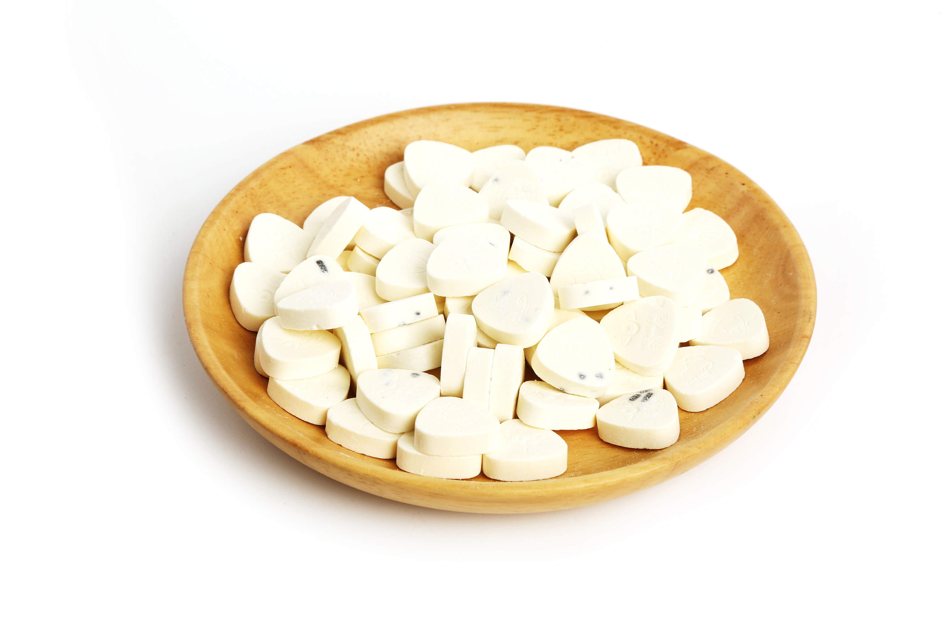 現(xiàn)在市售的奶片有許多種,比如奶酪片、羊奶片、牛奶片、奶球、酸奶干、奶味奶酪、牛初乳奶貝和奶酥等。這些產(chǎn)品五花八門,大都以地方特產(chǎn)的身份在市場上銷售。然而仔細看看配料表就會發(fā)現(xiàn),除了“奶粉”、“白砂糖”,“植脂末”、“酸味劑”、“甜味劑”、“香精”等添加劑也赫然在列。