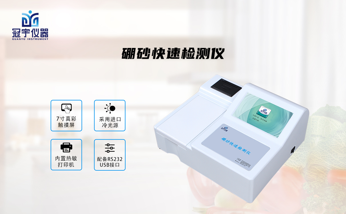 所以要嚴(yán)禁食品生產(chǎn)和市場中硼砂的濫用,冠宇儀器硼砂快速檢測儀能夠快速檢測面條、腐竹、米粉、涼粉、涼皮、面條、餃子皮、餛飩、粽子、肉丸、涼皮、肉制品、乳與乳制品、醬油、人造奶油、葡萄酒等食品中的硼砂含量。
