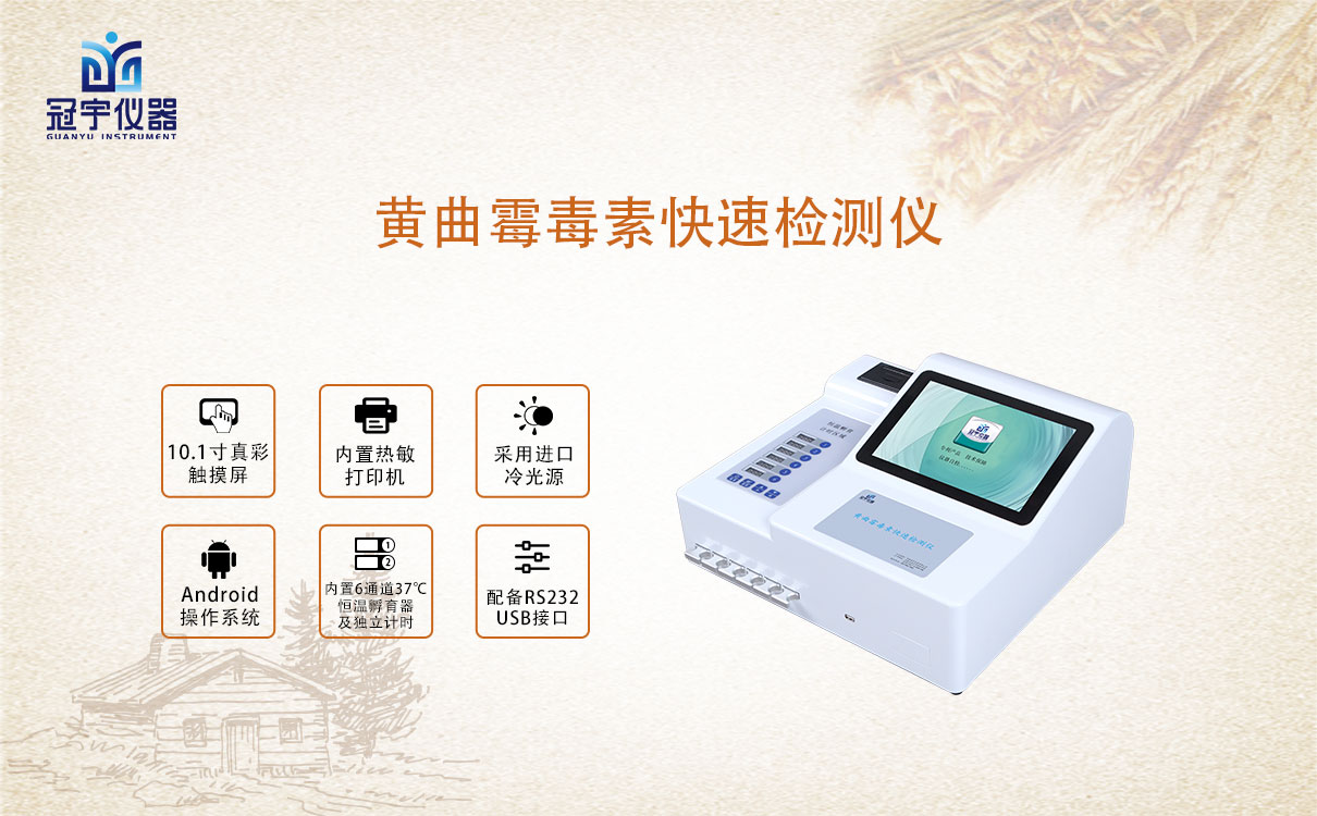 冠宇儀器黃曲霉毒素快速測試儀能夠快速定量檢測玉米、小麥、大米、大麥、小米和燕麥等谷物、飼料、面粉、食用油、調(diào)味品中黃曲霉毒素,適用于糧庫收糧檢測、糧油監(jiān)測中心、糧油飼料生產(chǎn)加工、食品加工貿(mào)易、畜禽養(yǎng)殖戶自查、工商質(zhì)監(jiān)部門用于市場快速篩查等。