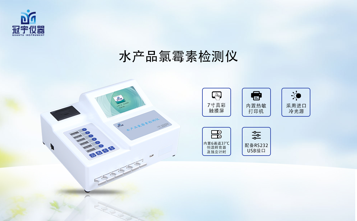 冠宇儀器GY-720水產(chǎn)品氯霉素檢測(cè)儀應(yīng)用競(jìng)爭(zhēng)抑制免疫層析的原理,通過檢測(cè)線熒光定量卡中的熒光強(qiáng)弱程度,定量分析待檢樣品中氯霉素殘留含量。http://www.xfgsgw.cn/products-zh-2622.html