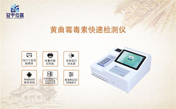 冠宇儀器黃曲霉毒素快速測試儀能夠快速定量檢測玉米、小麥、大米、大麥、小米和燕麥等谷物、飼料、面粉、食用油、調(diào)味品中黃曲霉毒素B1,適用于糧庫收糧檢測、糧油監(jiān)測中心、糧油飼料生產(chǎn)加工、食品加工貿(mào)易、畜禽養(yǎng)殖戶自查、工商質(zhì)監(jiān)部門用于市場快速篩查等。