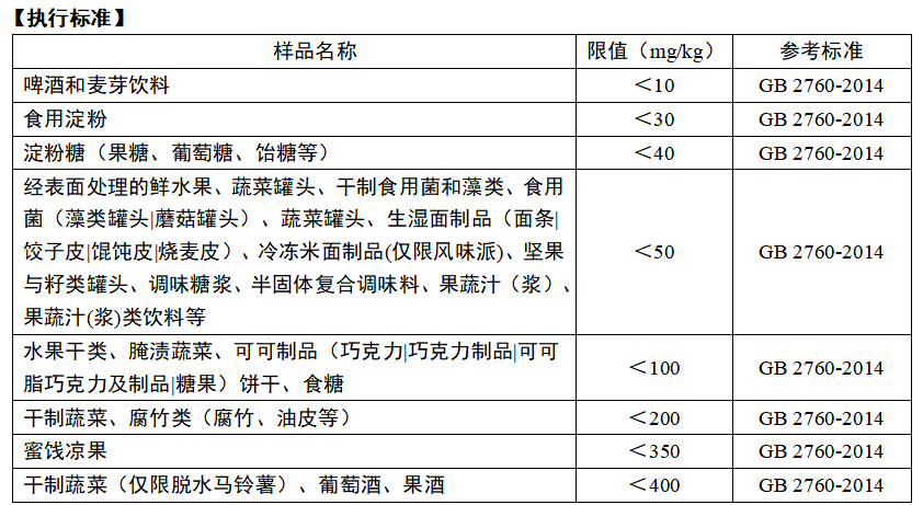 為保證消費(fèi)者健康,我國(guó)在食品添加劑標(biāo)準(zhǔn)中規(guī)定了二氧化硫類物質(zhì)在食品中的使用范圍、使用量及允許最大殘留量。