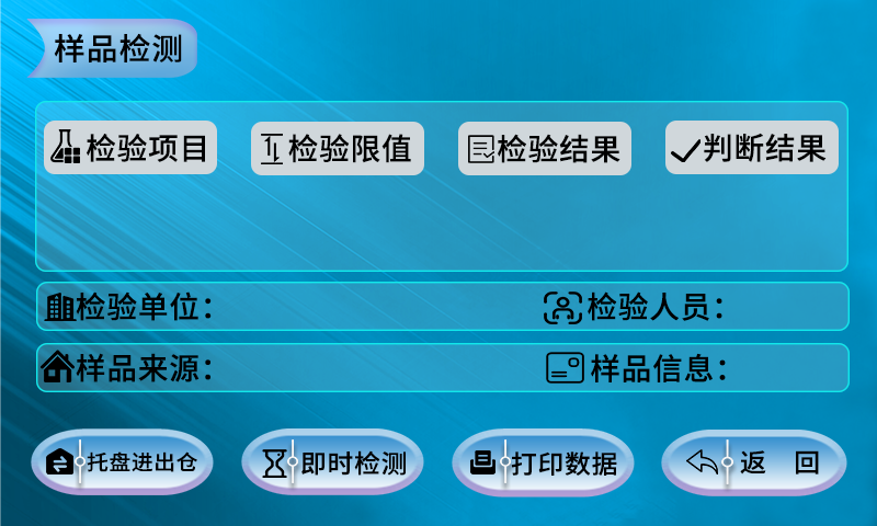 2.1點(diǎn)擊【檢驗(yàn)單位】【檢驗(yàn)人員】【樣品來源】后面所屬的空白區(qū)域,進(jìn)行選著對(duì)應(yīng)的信息。(如信息空白,請(qǐng)按照返回按照系統(tǒng)設(shè)置進(jìn)行操作)