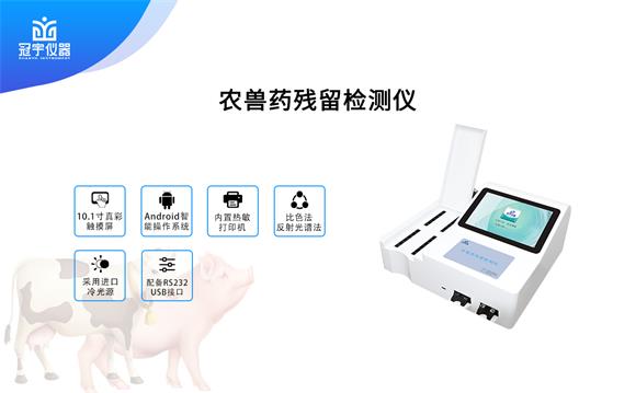 食品檢驗部門要加強對農獸藥殘留進行檢測,冠宇儀器農獸藥殘留檢測儀可現(xiàn)場快速檢測農藥殘留(有機磷類農藥殘留、氨基甲酸酯類農藥殘留、菊酯類農藥殘留、有機氯類農藥殘留等)、獸藥殘留(鹽酸克倫特羅、萊克多巴胺、沙丁胺醇、恩諾沙星、氯霉素、磺胺類、喹喏酮類、呋喃類、四環(huán)素類、阿莫西林、孔雀石綠、黃曲霉毒素、環(huán)丙沙星、紅霉素、土霉素、喹乙醇、已烯雌酚等)。