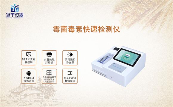 冠宇儀器生產的霉菌毒素檢測儀能夠快速定量檢測糧食、飼料、谷物、食用油、調味品等食品中黃曲霉毒素、T2毒素、嘔吐毒素、赭曲霉毒素、伏馬毒素、玉米赤霉烯酮,真菌毒素殘留定量分析儀適用于糧油監(jiān)測中心、糧油飼料生產加工、食品加工貿易、畜禽養(yǎng)殖戶自查、工商質監(jiān)部門用于市場快速篩查等。