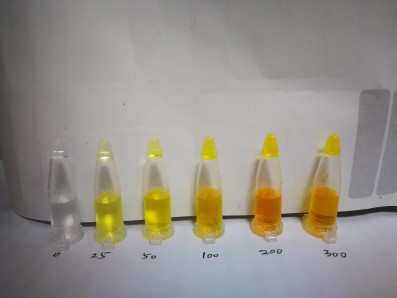 2.2:若溶液顏色呈淡黃色至橘色,則表示樣品中有添加雙氧水。顏色越深表示過(guò)氧化氫(雙氧水)含量越高。