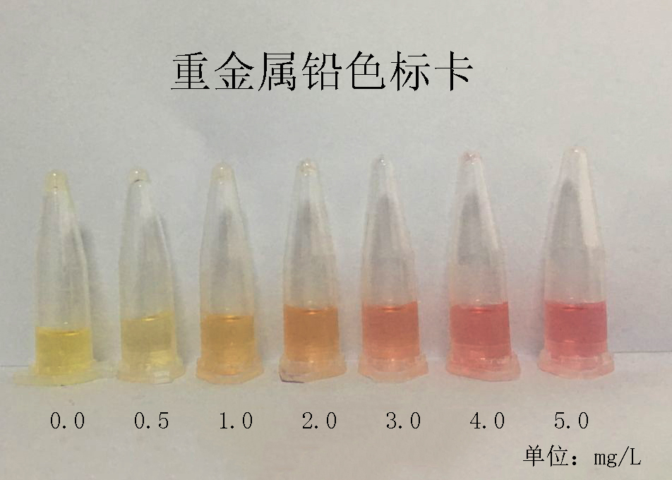2.2:若檢測管顏色為深黃色,說明不含有鉛。鉛的含量與比色卡進行對照??瞻讓φ展転樵噭┍旧驘o色。(見色卡)